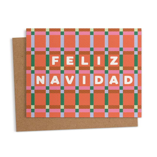 Ana Peake - Boxed Set of 6 Feliz Navidad Plaid Spanish Greeting Cards