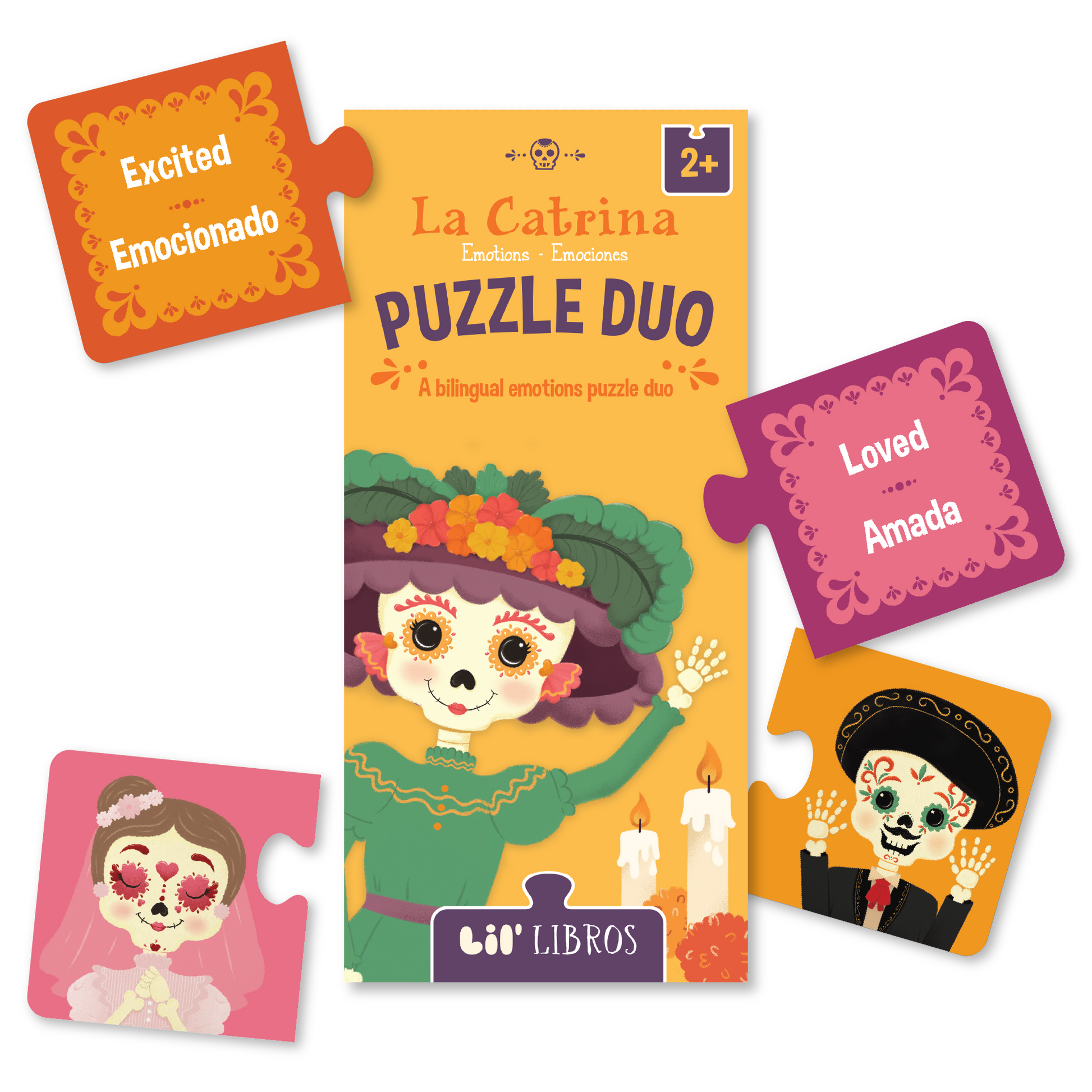 Lil' Libros ~ Bilingual Children's Books & Games - La Catrina: Emotions / Emociones Puzzle Duo (Bilingual: English and Spanish)
