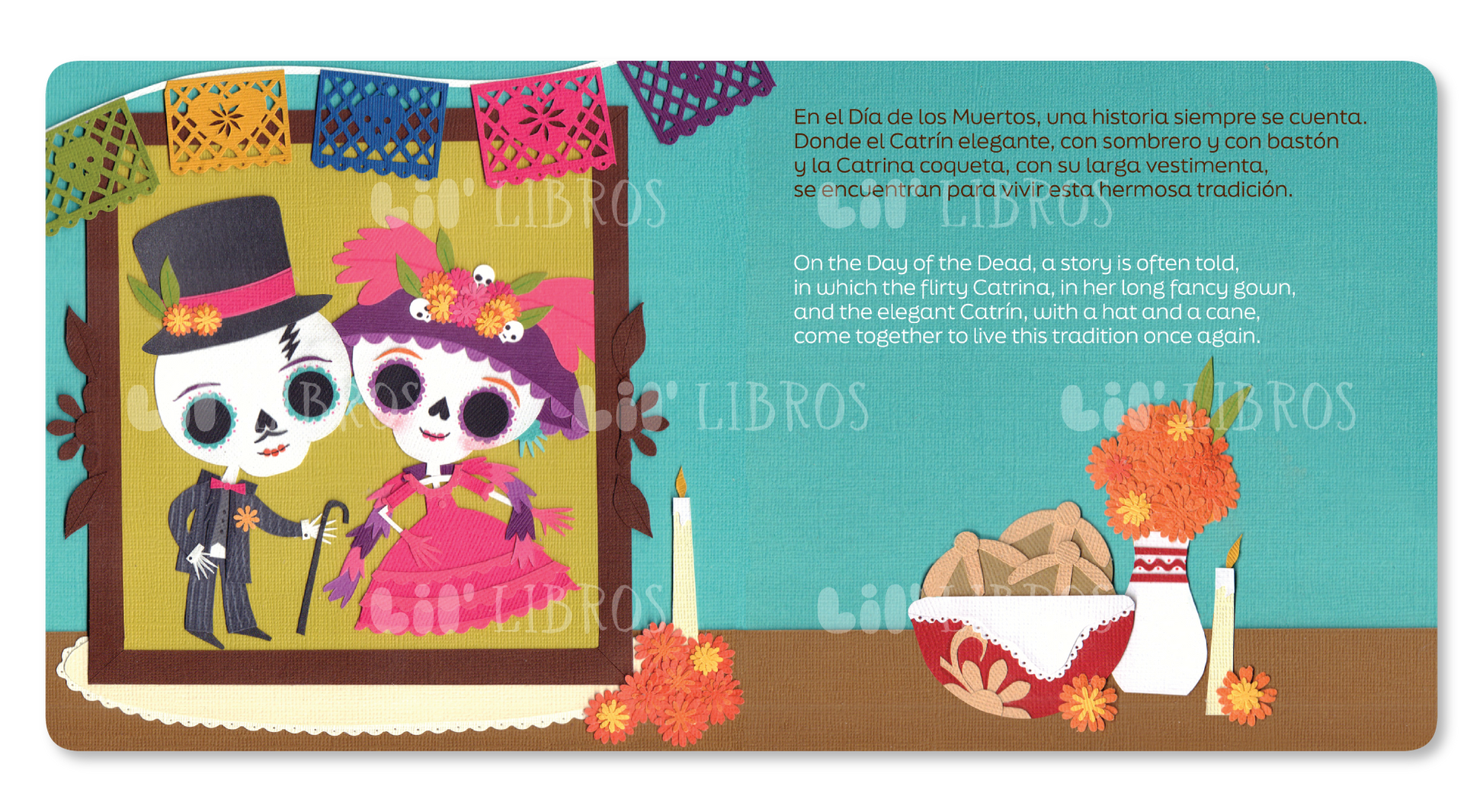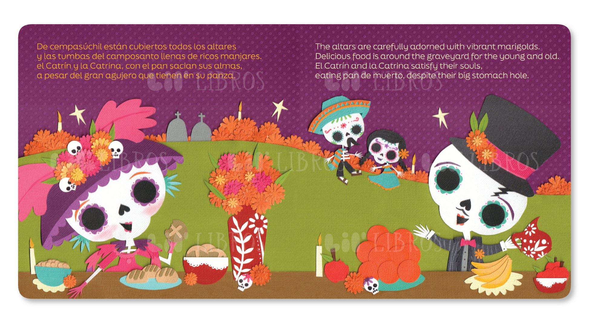 This is the story of a beloved pair that is not often told, the dapper El Catrin and the graceful La Catrina, dressed to impress and ready to welcome new souls to a festivity that is held yearly. Surrounded by enchanting marigolds, scented candles, and an abundance of pan de muerto, this bony pair throws a celebration like ones never seen before. Together, El Catrin and La Catrina become guides, ushering souls to their new abodes and casting light on the transition from one life stage to the most magnificent afterlife. Heartwarming with a touch of humor, this bilingual English-Spanish board book is a treasure for little readers, paying tribute to the eternal connection between the living and the departed.